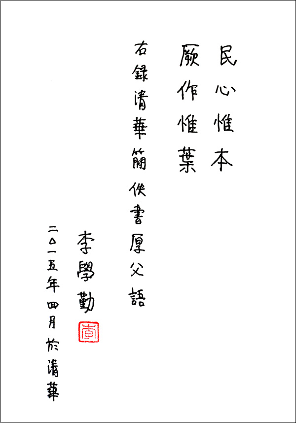 李学勤寄语广大党员领导干部:民心惟本,厥作惟叶